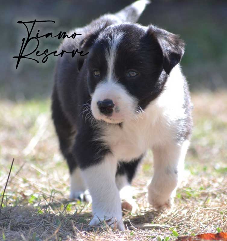 Ce très joli petit gars portant le nom de Tiamo des petits loups noirs, porte une belle liste en tête et un 1/2 collier. Il est né de l’union de Lollipop de Médoc’Laine et de Némo des Mauves bruyères le 5 septembre à 21h55.