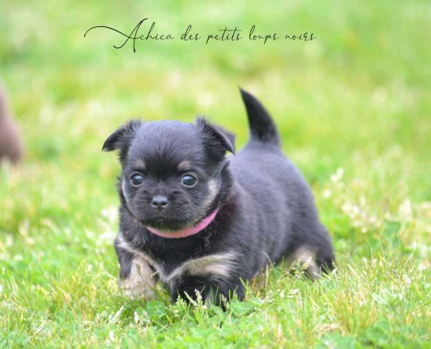 Petite femelle noir et tan, née le 31 janvier à 00h08, de l’union de Tchamarree ferme de laine & Pumbaa des petits loups noirs.